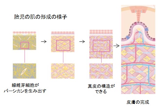 「バーシカン」は初めて肌が作られる胎児期に大量に生み出され、肌の土台を作る物質です。